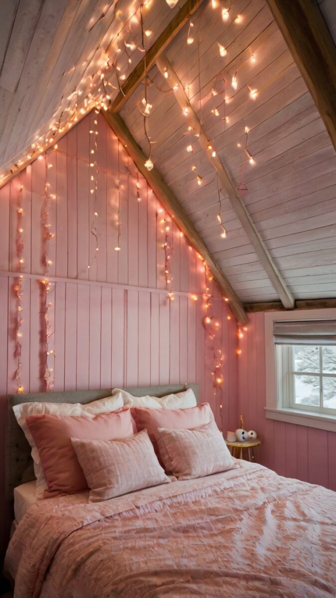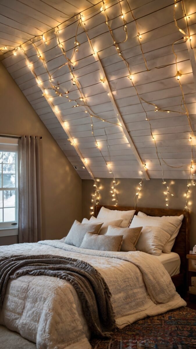String lights are one of my go-to ideas for sloped ceiling bedrooms.