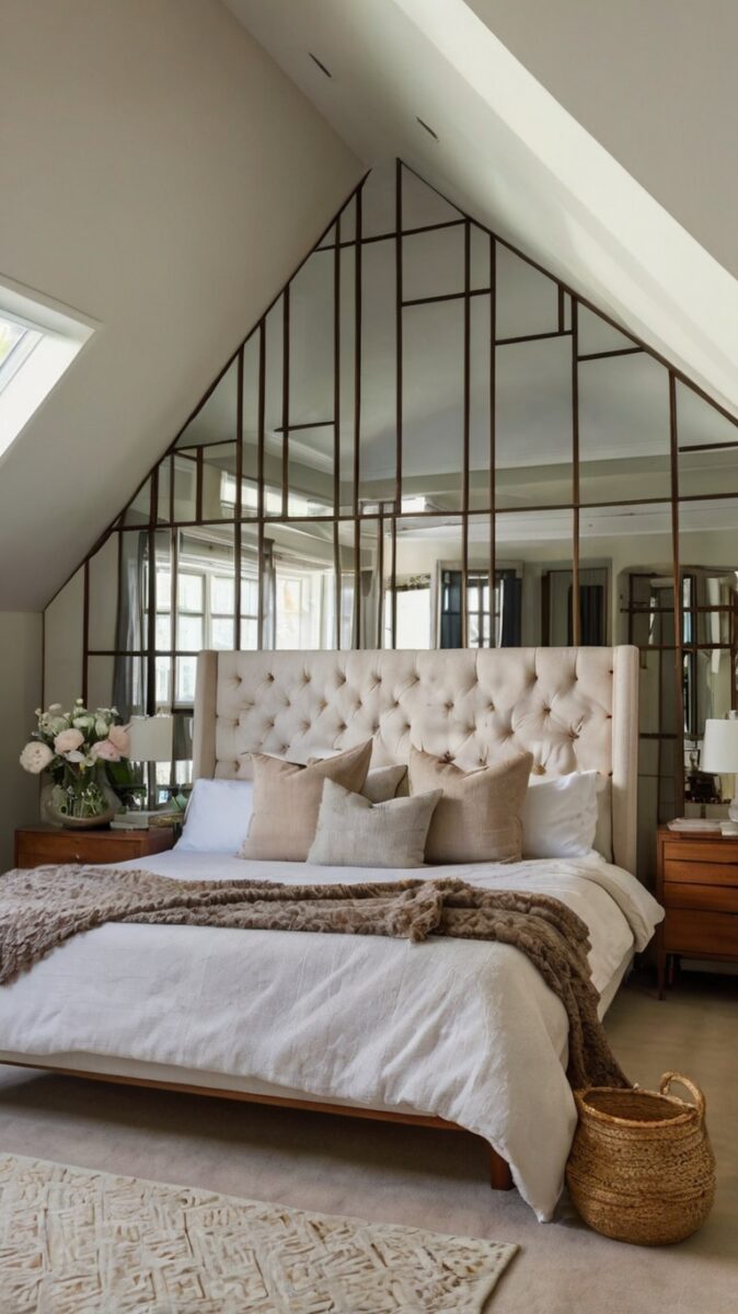 Mirrors are a game-changer in sloped ceiling bedrooms.
