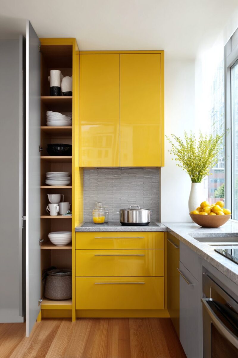 Cabinet doors represent square footage that’s often completely wasted in apartment kitchens.