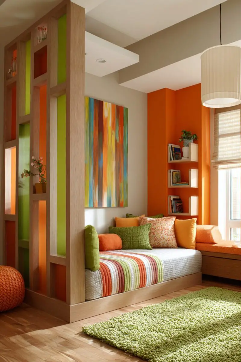 Hanging panels made from colorful fabric or even string lights create a whimsical separation that feels more like decoration than division.