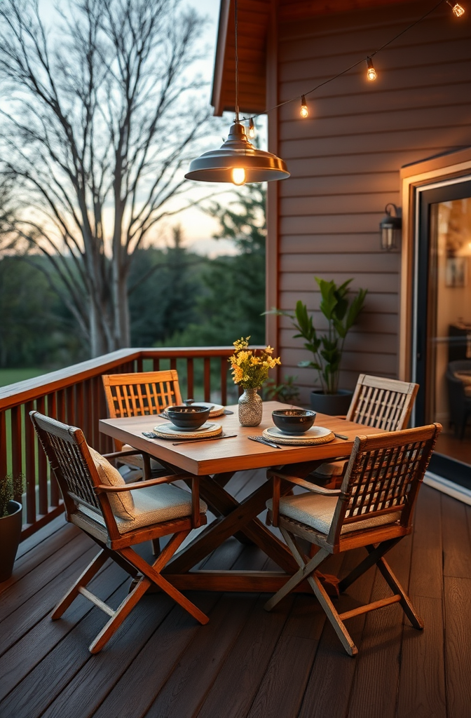Folding chairs are your best friends for small deck dining areas—they can be tucked away when not in use.