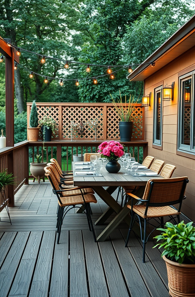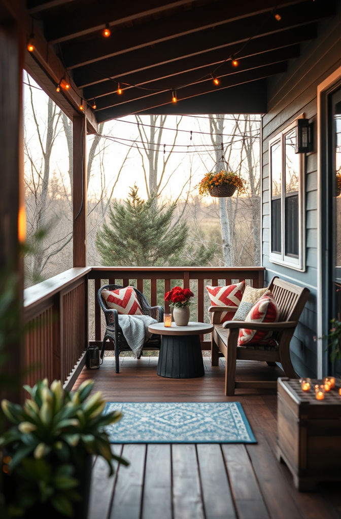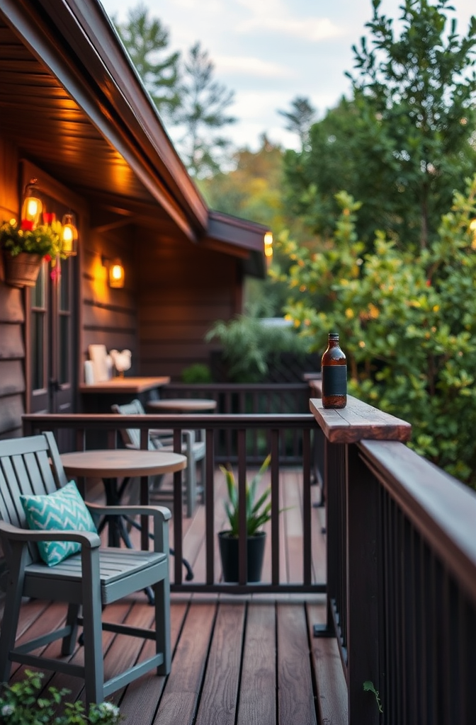 Add outdoor-friendly throw pillows that can be changed seasonally to refresh your deck’s look.