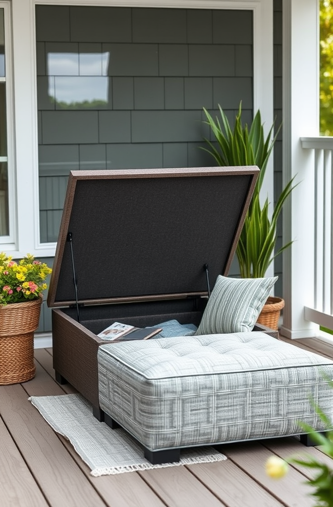 Choose an ottoman with hidden storage to keep outdoor essentials tucked away when not in use.