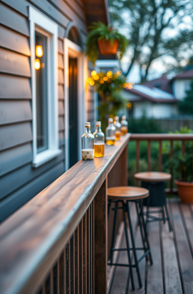 Transform your deck railing from a simple safety feature into valuable entertainment space with a railing bar setup.