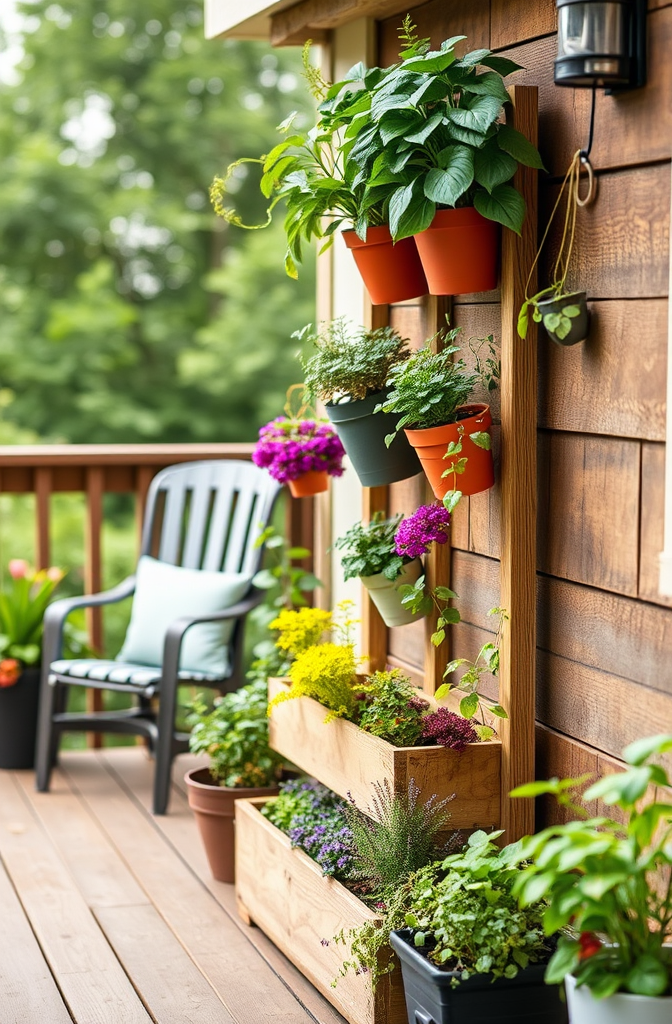 A vertical garden setup maximizes your greenery without sacrificing seating area.