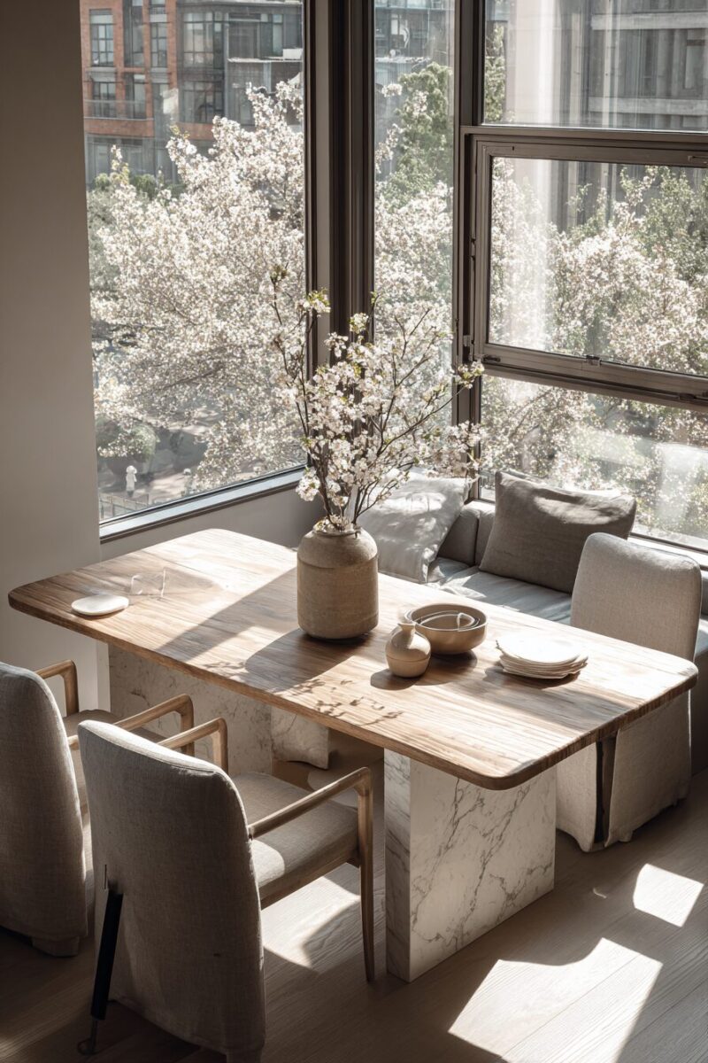 The luxurious weight and cool surface of marble instantly elevates any space, making even the tiniest dining nook feel sophisticated and intentional rather than cramped or makeshift.