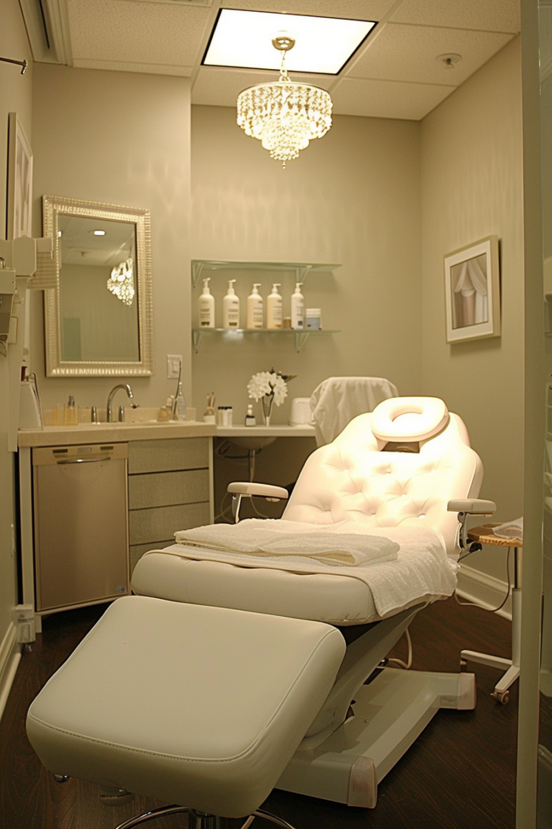 Quality lighting sets the calming, professional tone needed for a small facial oasis.