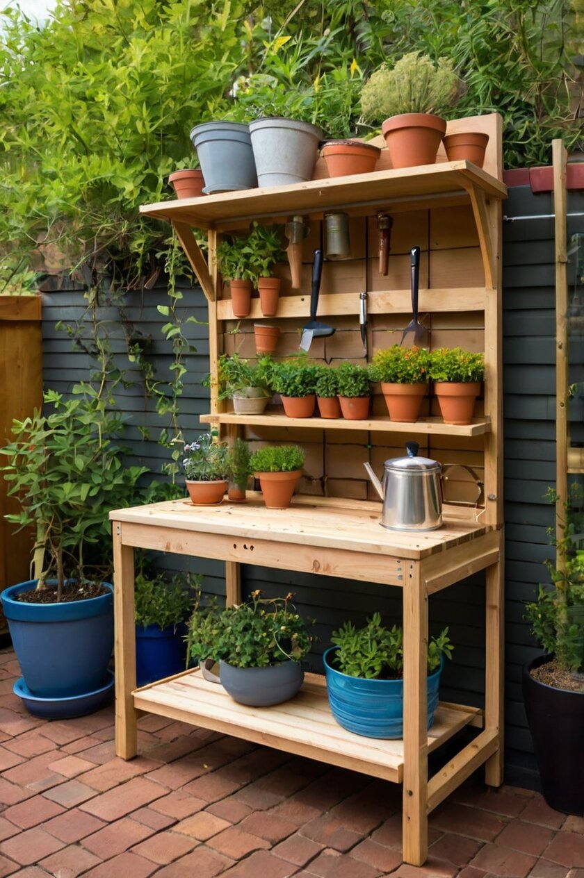 A potting bench is super useful for any gardener, but traditional ones take up too much space in a small garden.