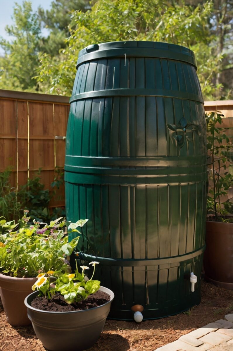 Even in a small garden, you can set up a compact rain barrel system that doesn’t take up much room.