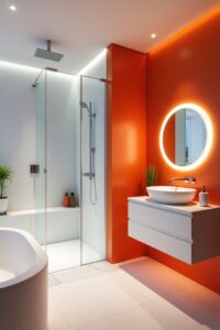 Focus any splurges on showerheads, glass doors, or tile accents.
