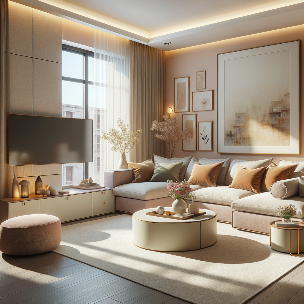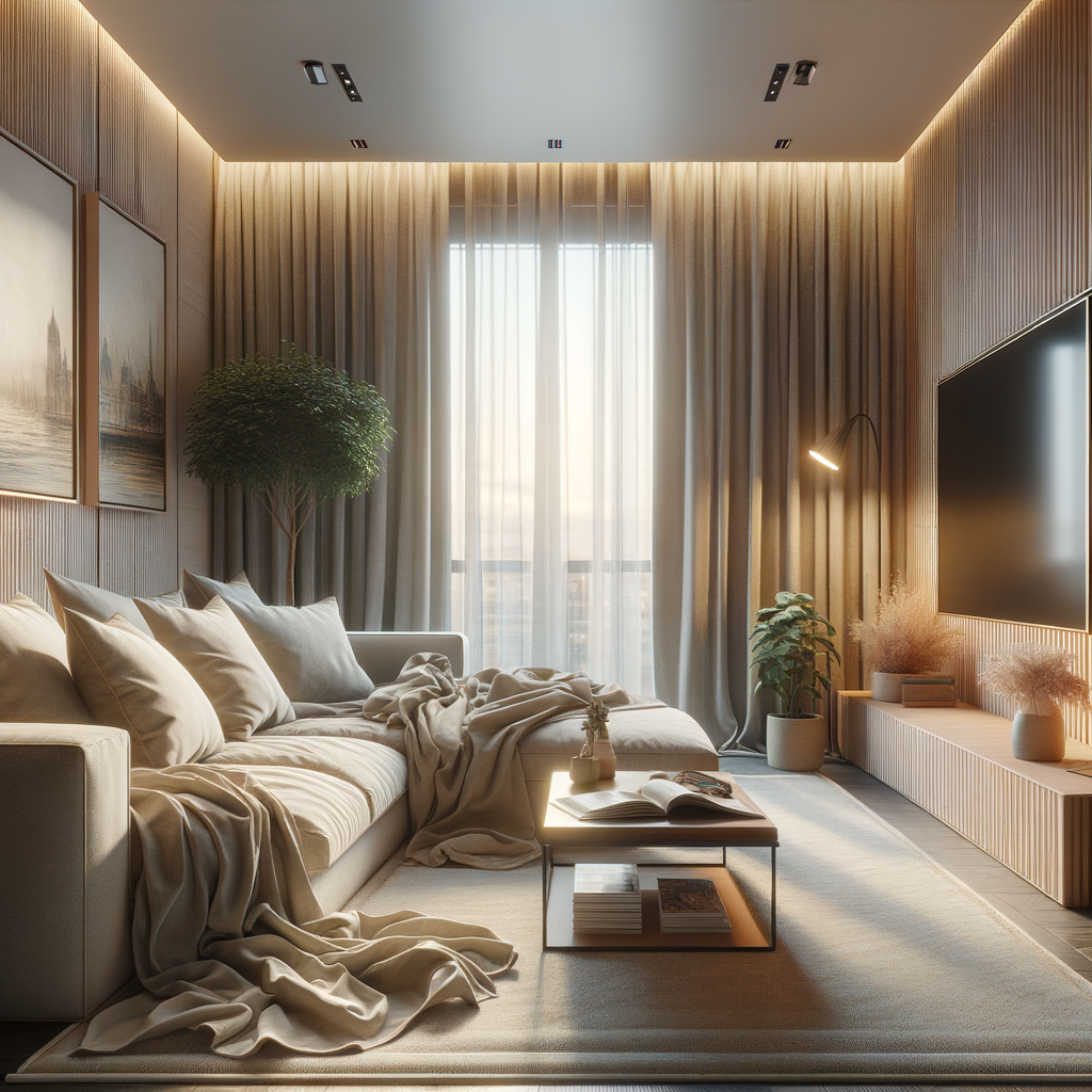 My living area is open plan with a minimalist aesthetic.