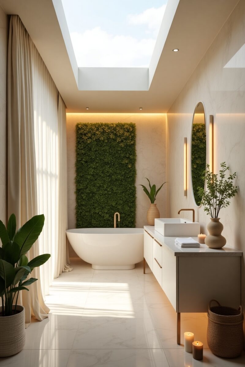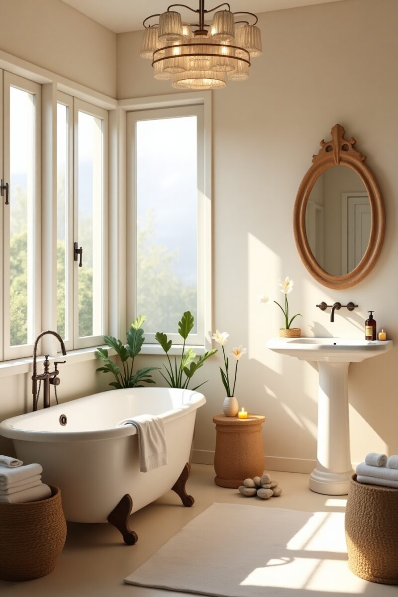 Consider the sensory experience of your décor – smooth stones by the sink that feel cool to the touch or textured linen towels that engage tactile senses.