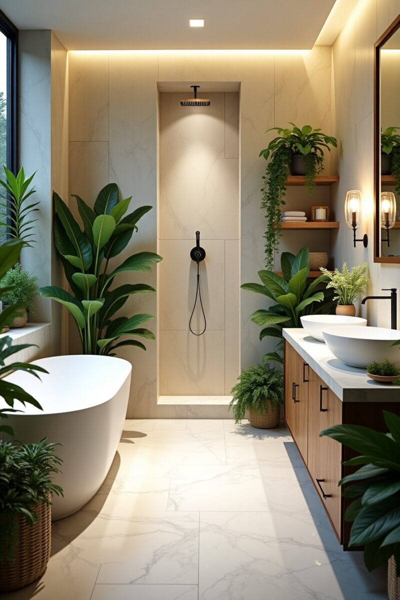 Bringing living plants into your bathroom creates an immediate connection to nature while improving air quality.