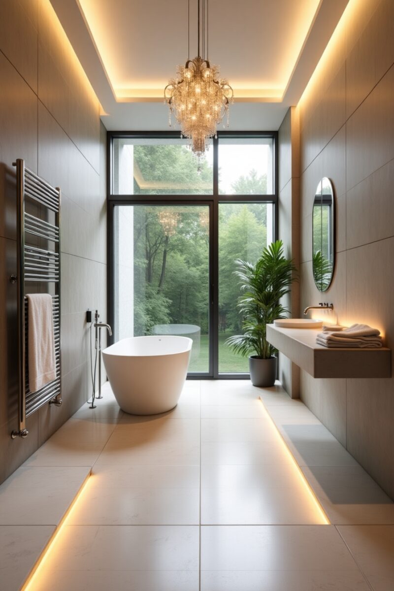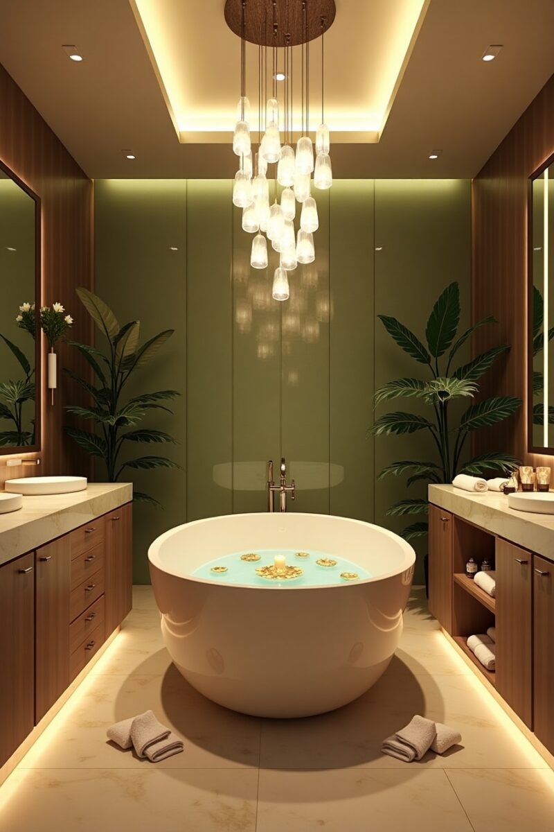 Lighting is perhaps the most transformative element in creating a spa-like bathroom, capable of completely altering the mood with the touch of a dimmer.