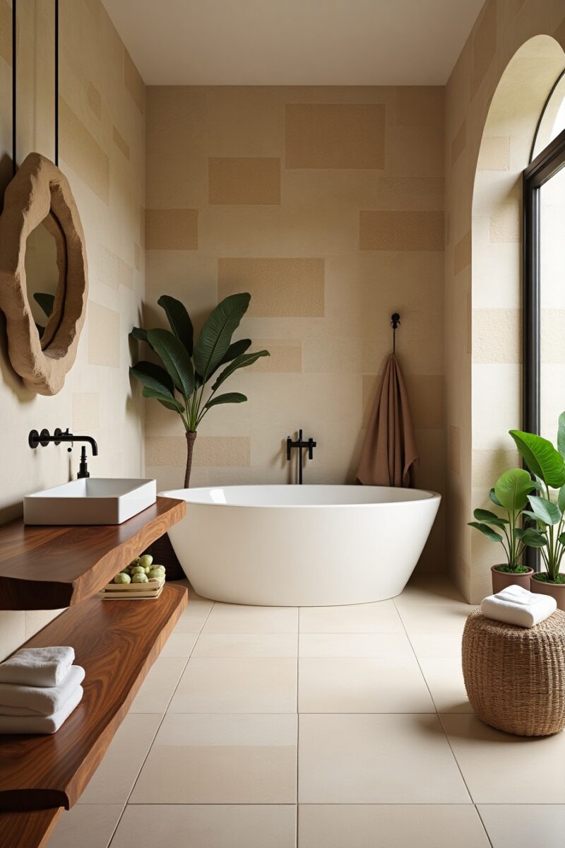 Natural materials create an immediate connection to the earth, grounding your bathroom in authentic luxury rather than artificial opulence.