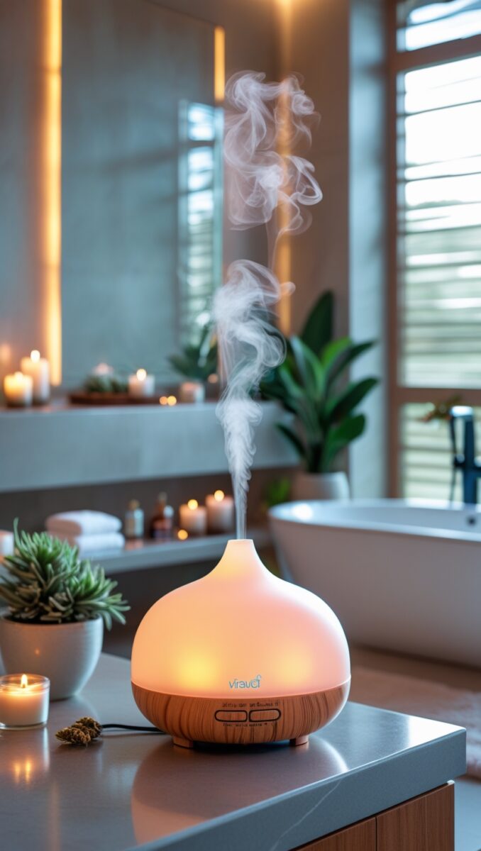 The diffuser also adds humidity to the air, which is great for your skin and breathing.