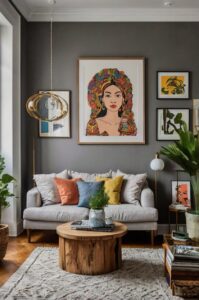 Strategic pops of bright color in accessories and artwork add personality without overwhelming your small space.