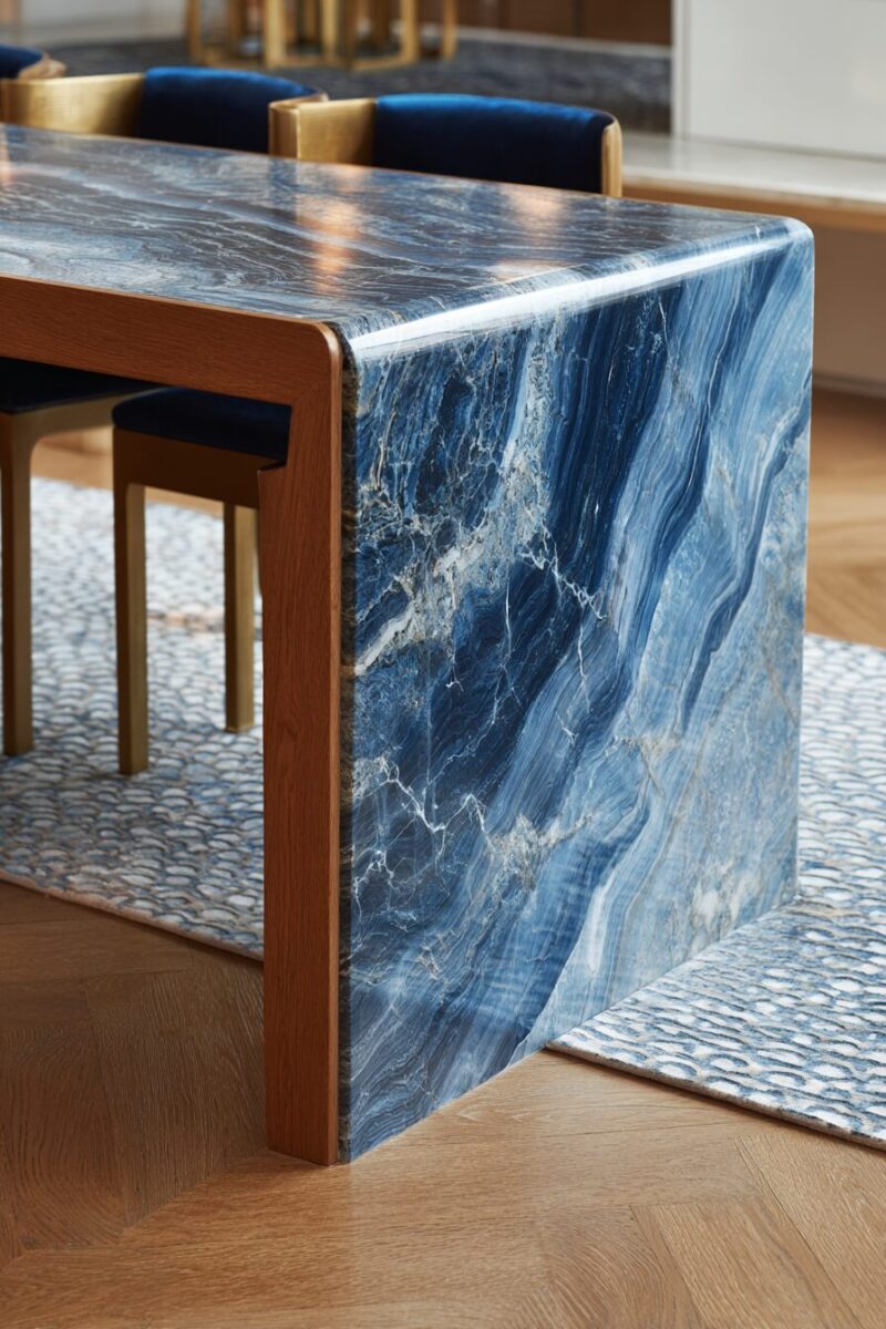 You’ve probably seen those sleek countertops that seem to flow like liquid stone, but imagine that same dramatic effect wrapping around your dining table.