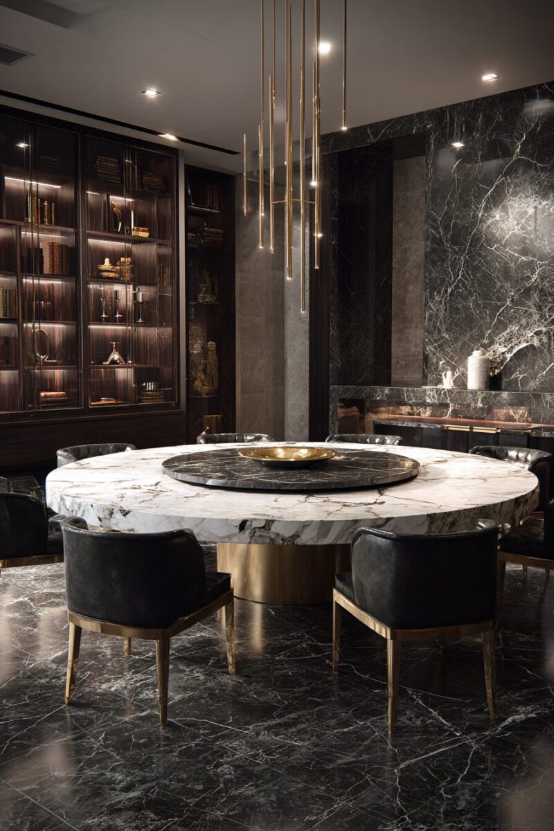 This isn’t your grandmother’s wooden turntable – modern marble lazy Susan tables integrate the rotating element seamlessly into the overall design aesthetic.