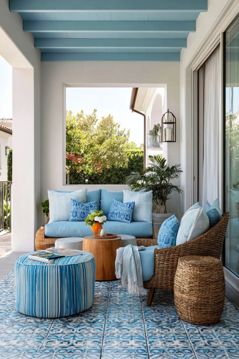 See the Room Planner →Painting your patio floor in a pale blue or aqua can completely transform the space, making it feel like an extension of the water.