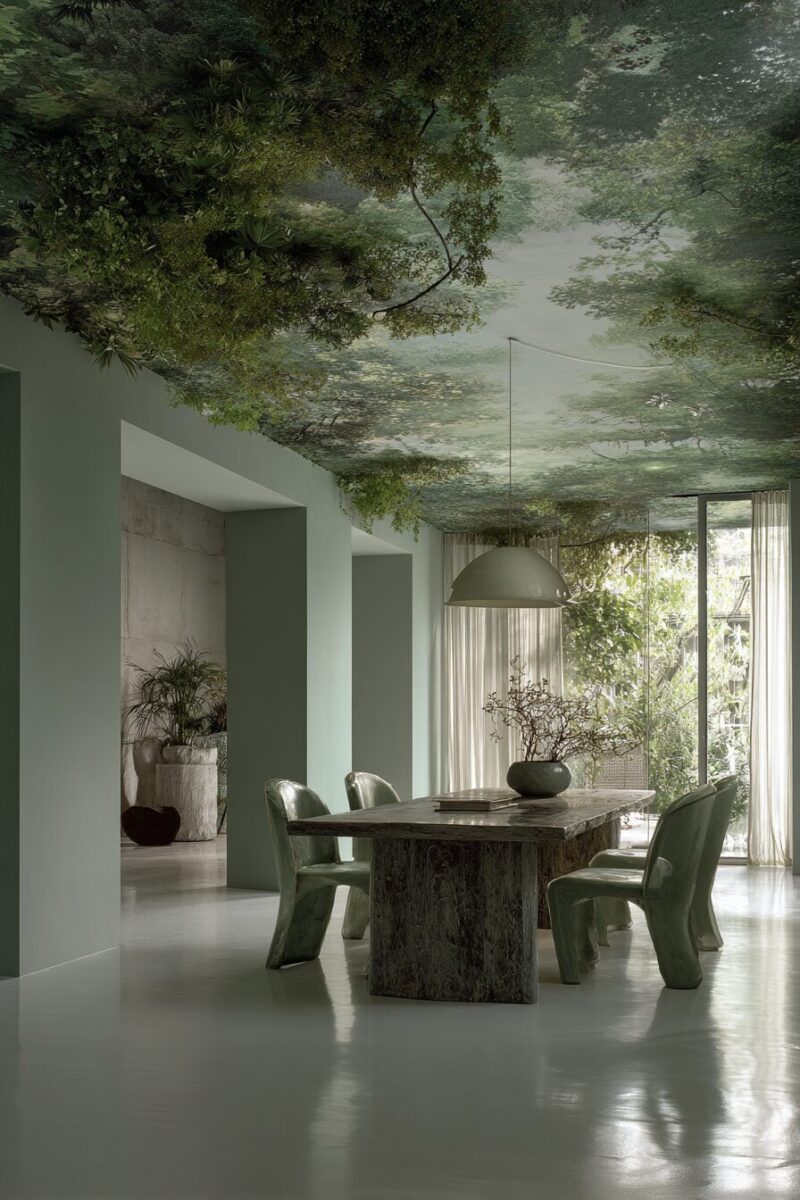 Ceiling treatments that seem to extend infinitely upward create vertigo-inducing perspectives that make even small rooms feel limitless.