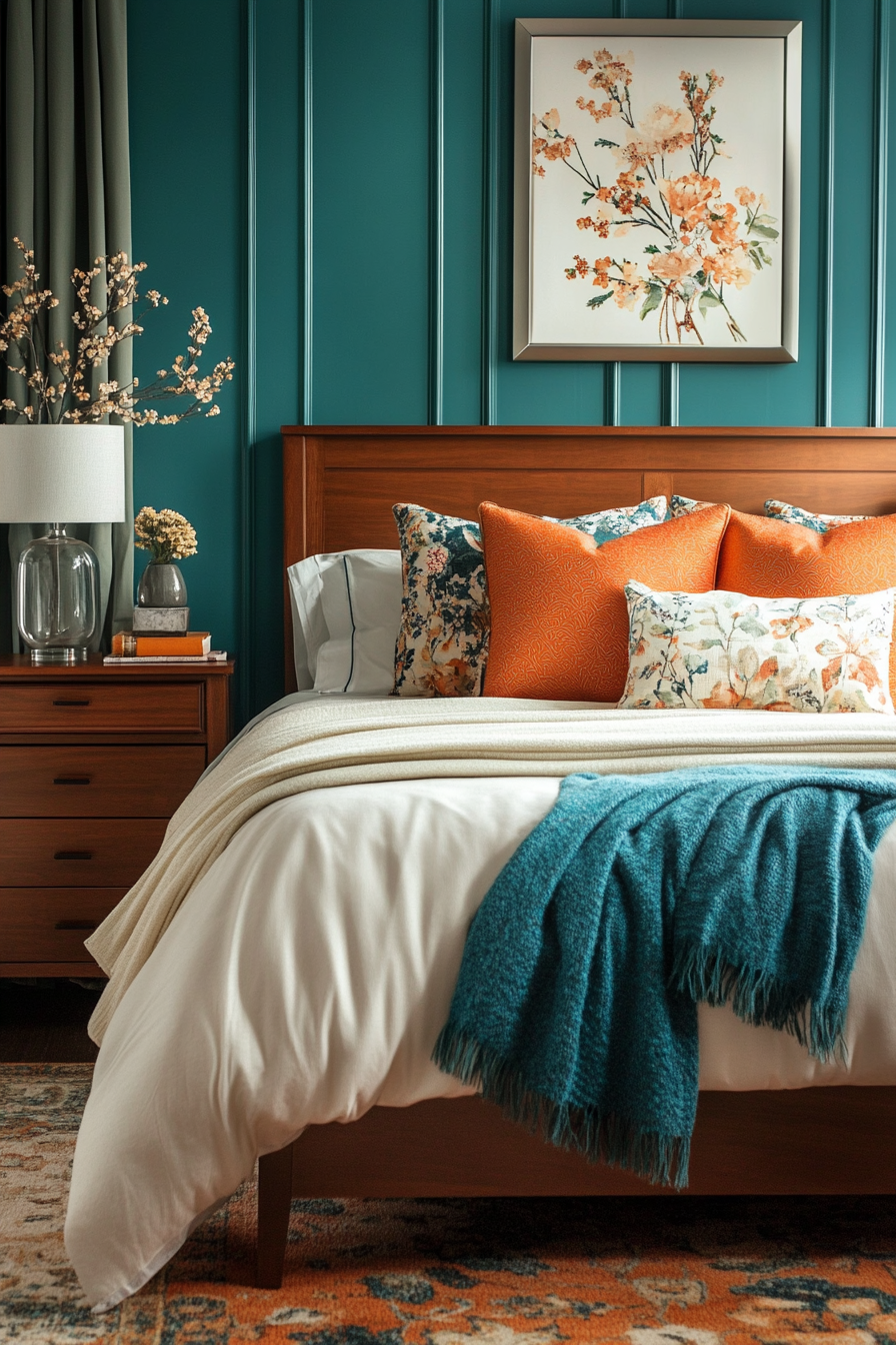 Nature-Inspired Teal and Spiced Orange Bedroom