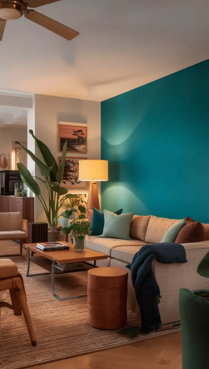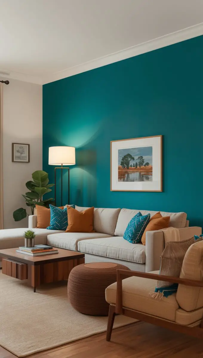 Pairing teal with contrasting shades like coral, mustard, or even gold can add warmth and interest to the space — for a more subtle look, combining teal walls with neutral furniture and decor can create a balanced, sophisticated feel.