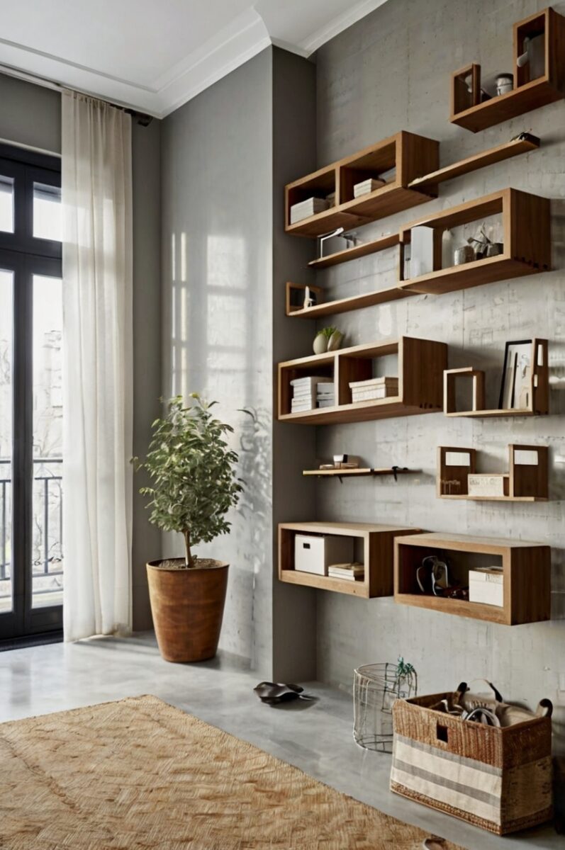 The beauty of floating shelves is that they’re both functional and decorative—they serve a purpose while also enhancing your hallway’s design.