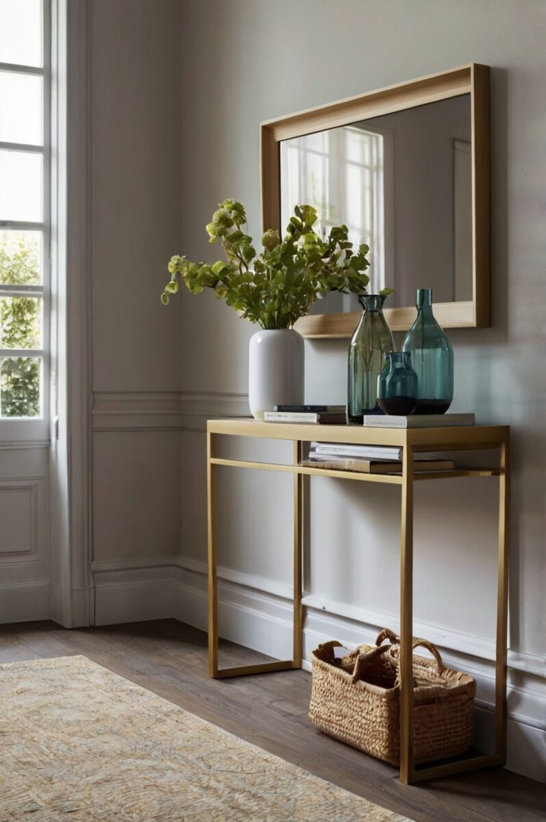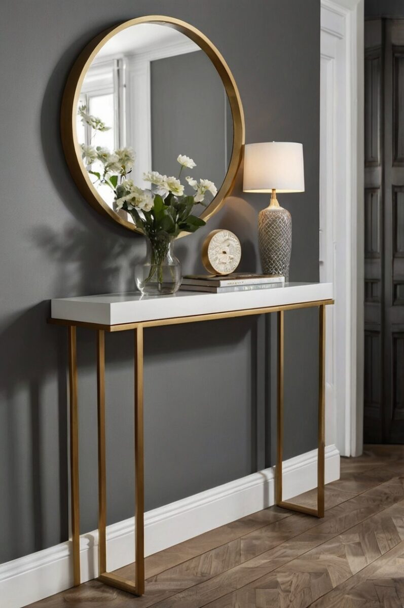 Try placing a narrow console table beneath a mirror and styling it with a small plant, a decorative tray, or a candle to create a complete vignette.