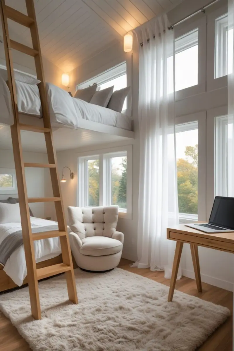 The best loft designs I’ve seen use natural wood beams and soft white linens that create this dreamy, cabin-in-the-clouds vibe.