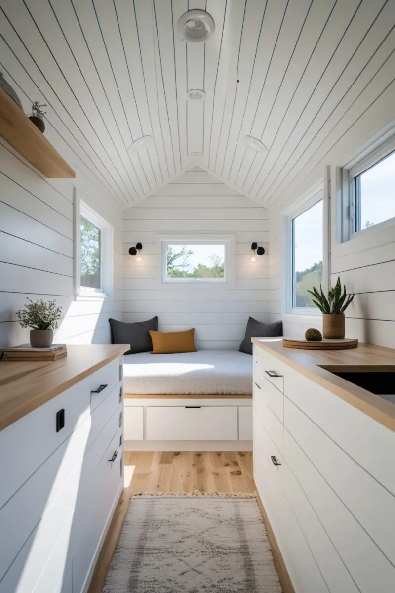 If I had a tiny house, I’d definitely incorporate shiplap on the ceiling for a modern farmhouse look.