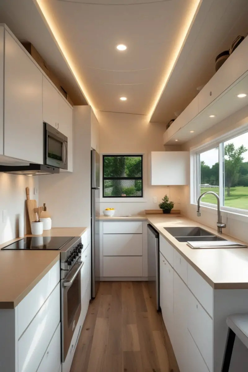 The kitchen island in a tiny house isn’t just a countertop—it’s your dining table, prep station, and storage hub all rolled into one.