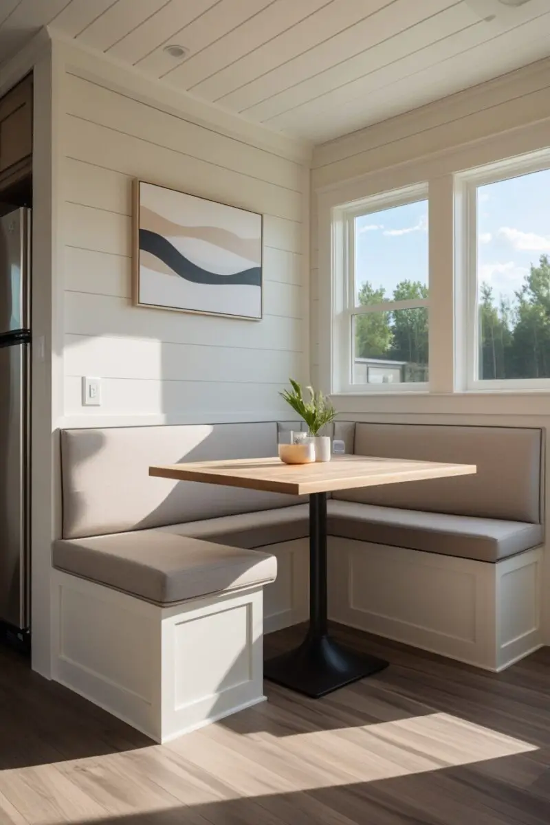 If I had a tiny house, I’d position the banquette near a window for the ultimate breakfast spot.