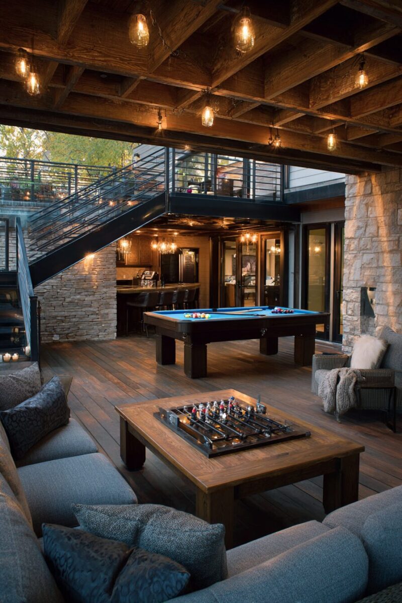 You can design a versatile game and recreation space that adapts to different seasons and activity preferences throughout the year.