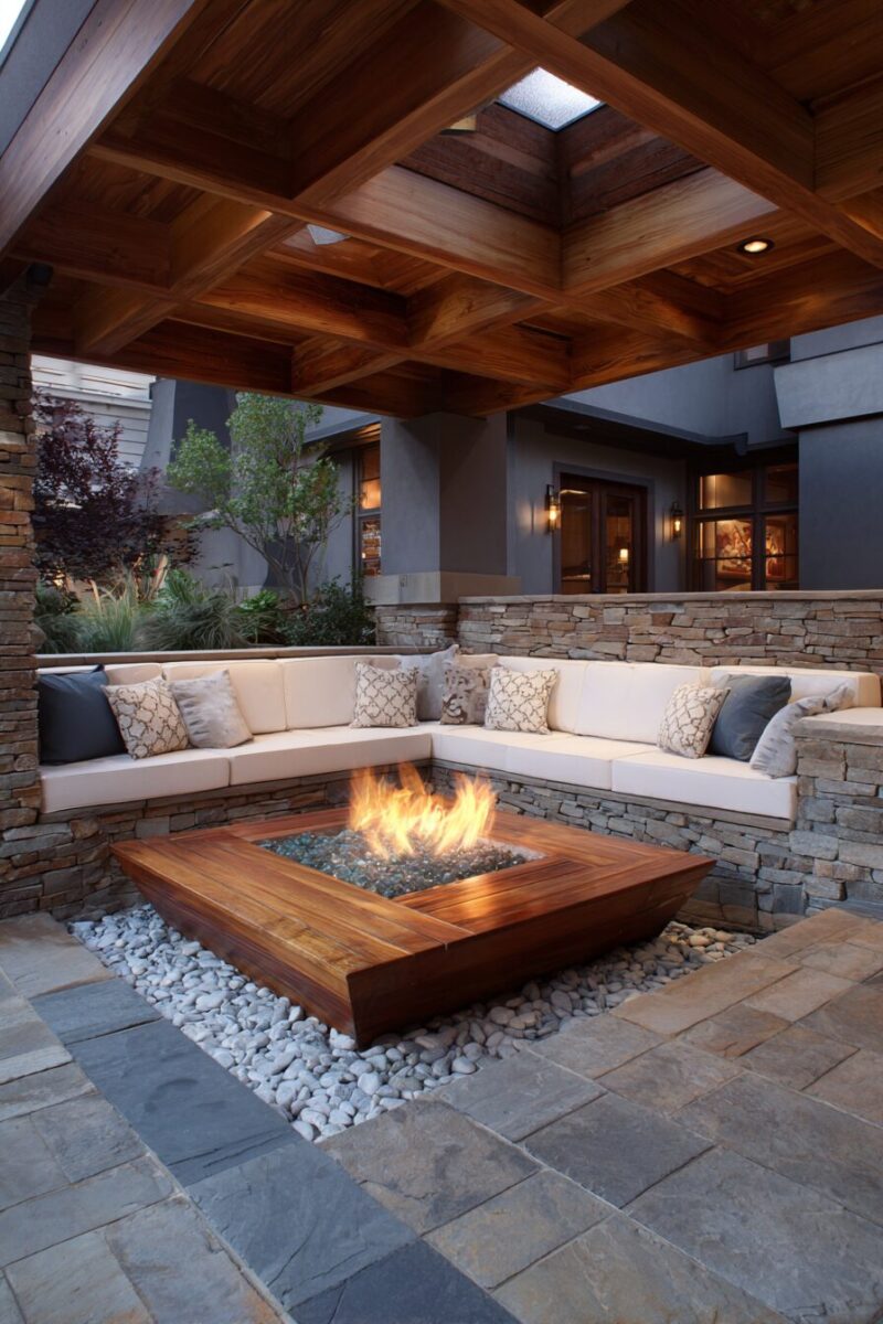 Surround your fire feature with comfortable outdoor sectionals or deep cushioned chairs that invite long conversations.