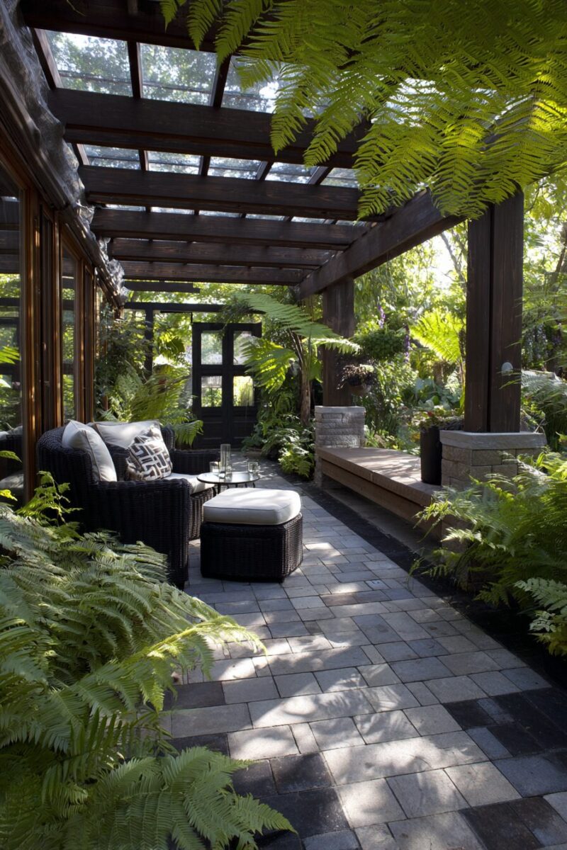 You’ll discover that the enclosed feeling created by plants overhead and around you provides a sense of privacy and tranquility.