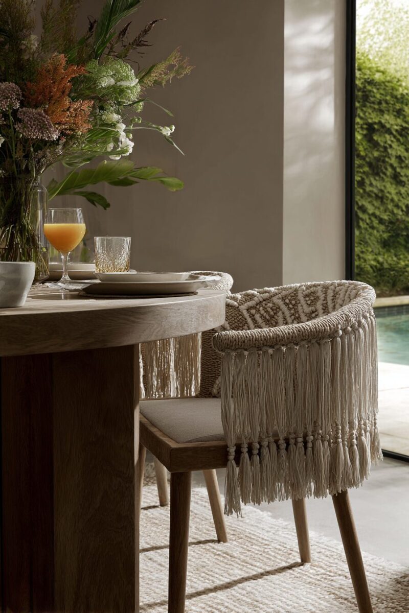 The length and thickness of fringe dramatically affects the chair’s personality – short, fine fringe feels more refined and can work in transitional spaces, while long, chunky fringe makes a bold bohemian statement.