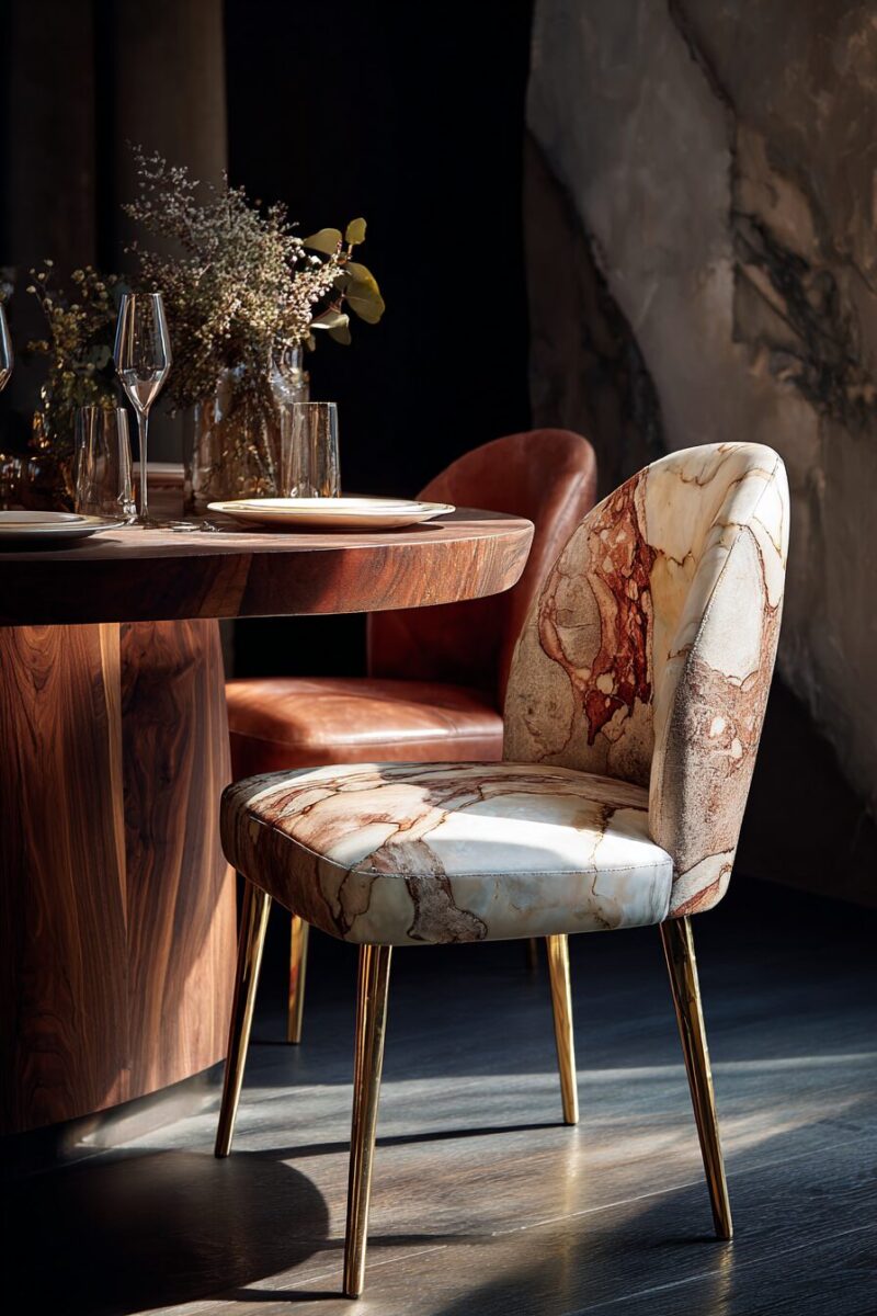 Combining different textures on a single chair creates depth and visual complexity that makes your dining room feel professionally designed.