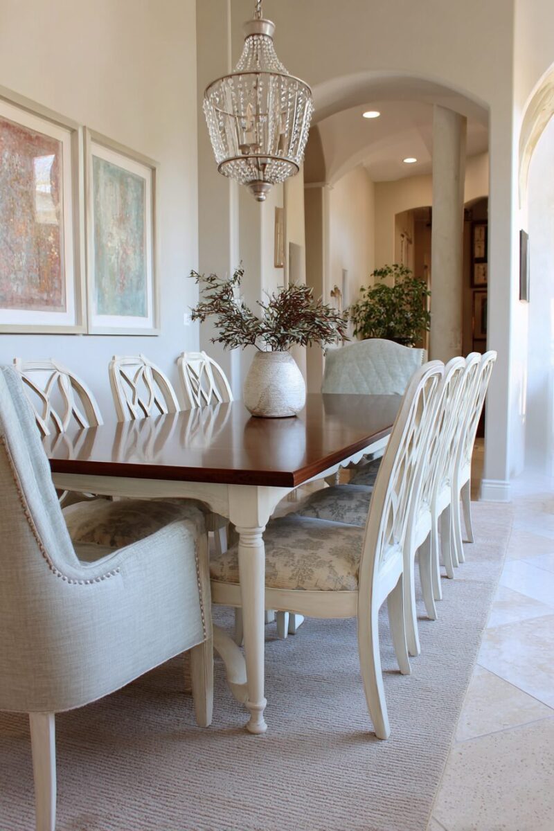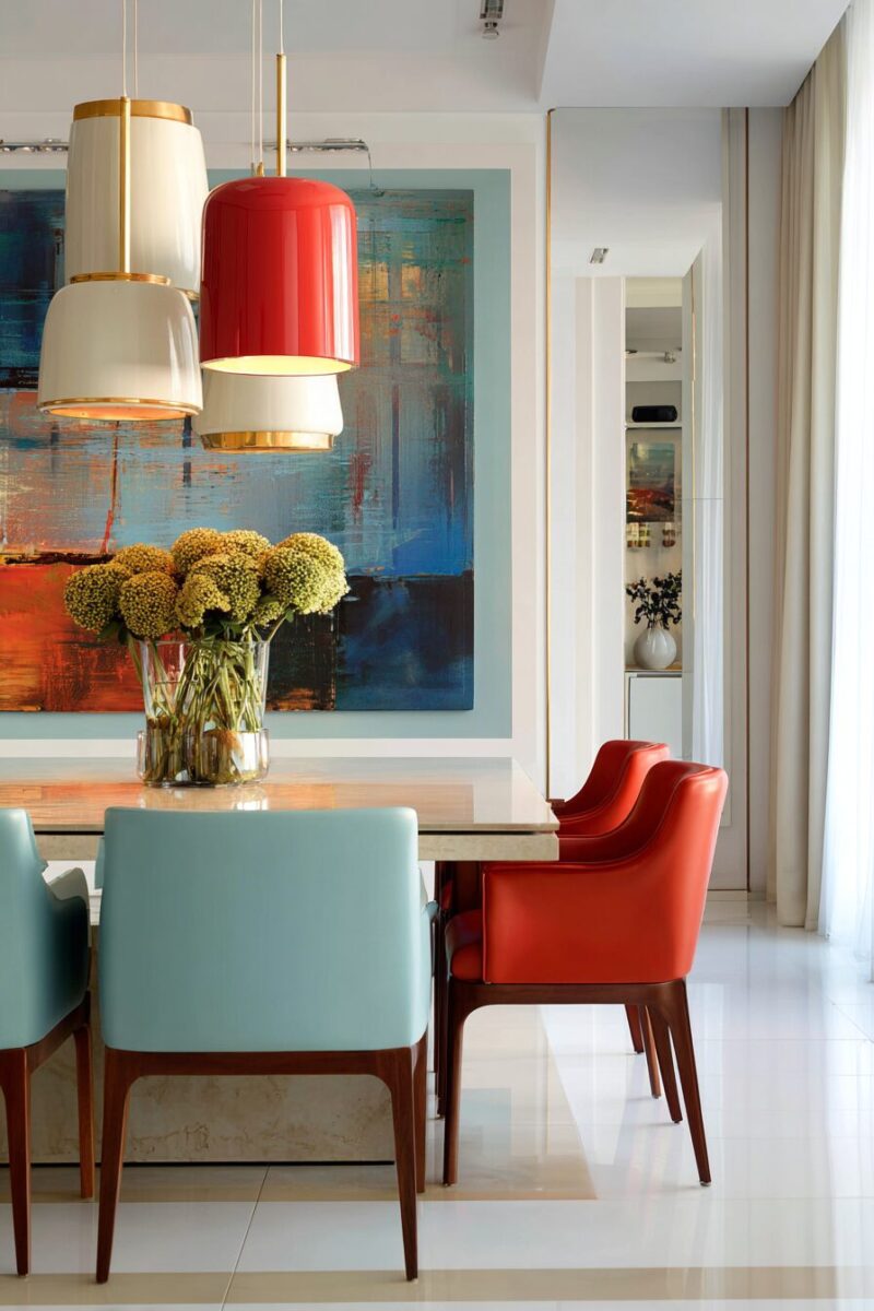 This technique allows you to introduce multiple colors into your dining room while maintaining a cohesive, intentional look that feels more sophisticated than random color mixing.