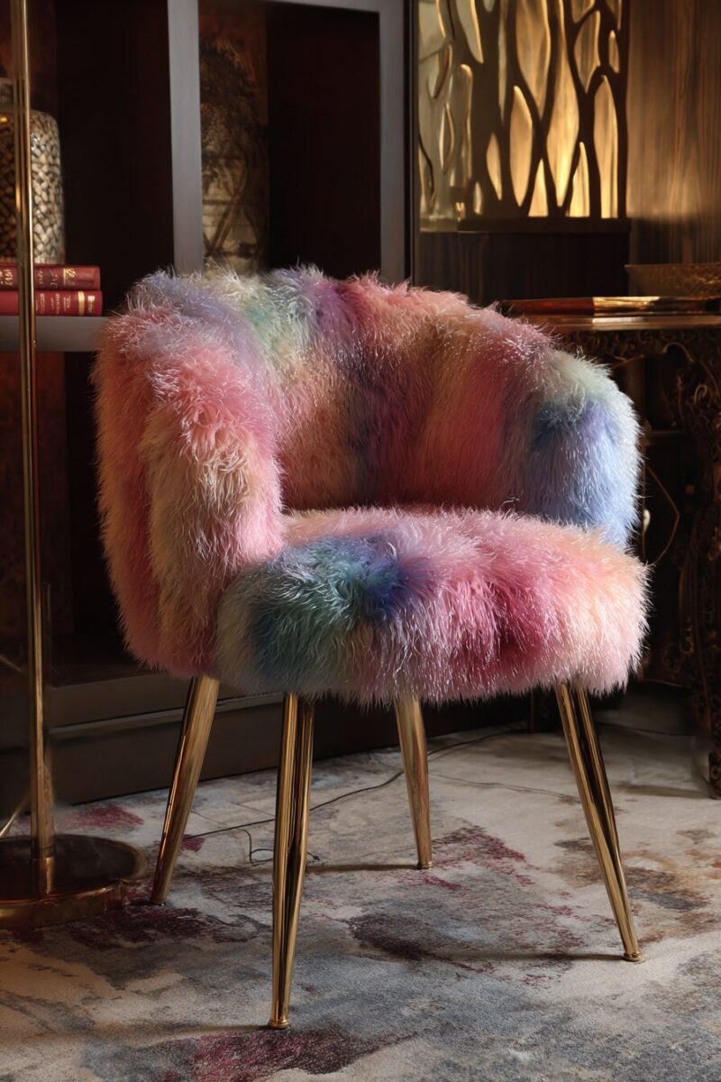 For those worried about practicality, modern faux fur upholstery is often machine washable or can be easily cleaned with a vacuum and spot treatment, making these chairs more practical than you might expect.