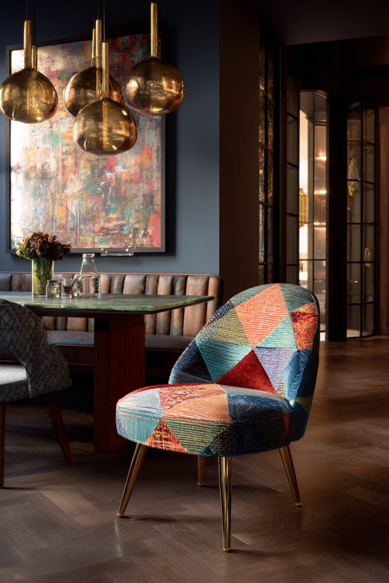 Geometric patterns on dining chairs can transform your eating space into a dynamic, energy-filled room that reflects modern design sensibilities.