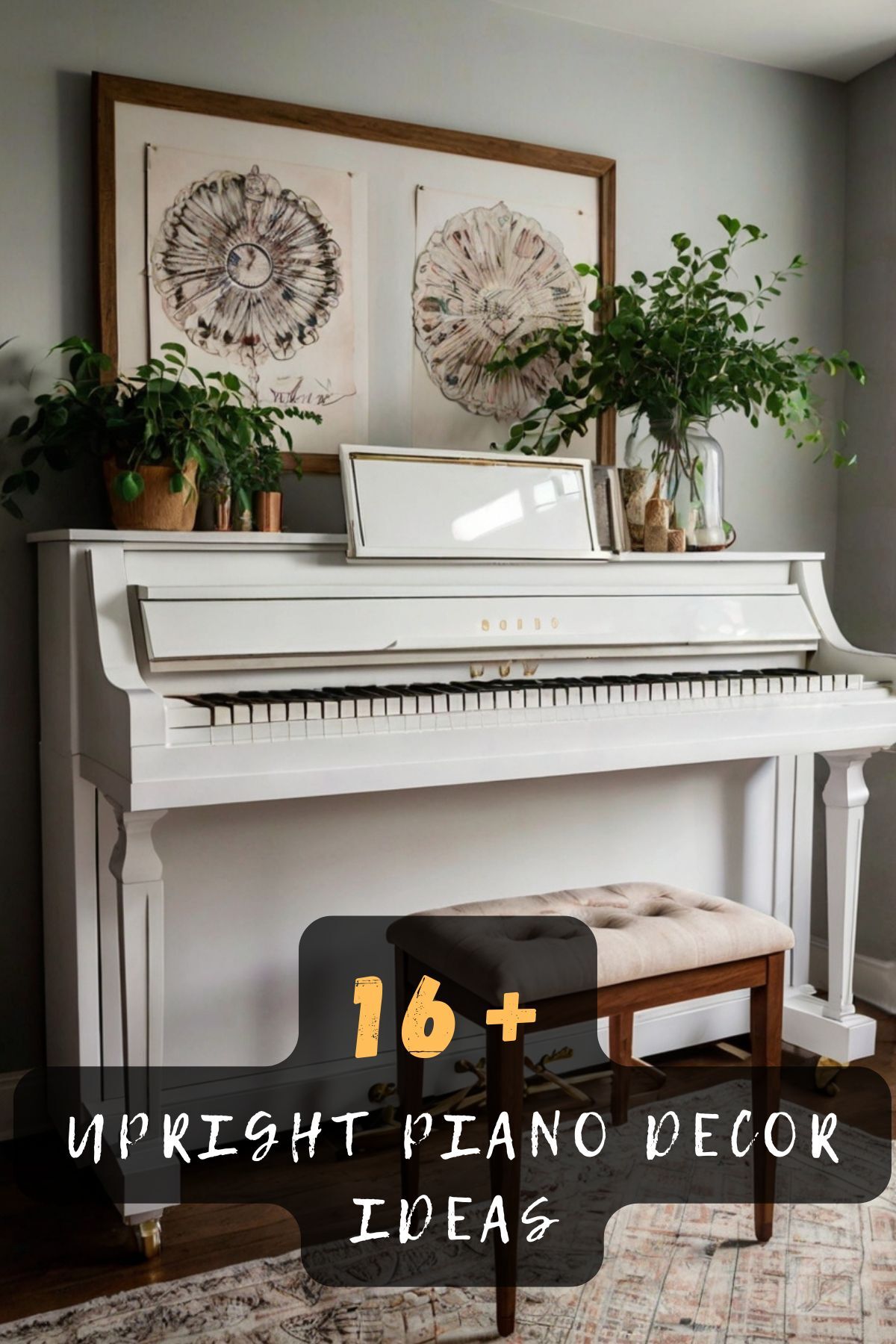 Choose plants that thrive in the room’s lighting conditions and complement the piano’s wood tones for a harmonious look.