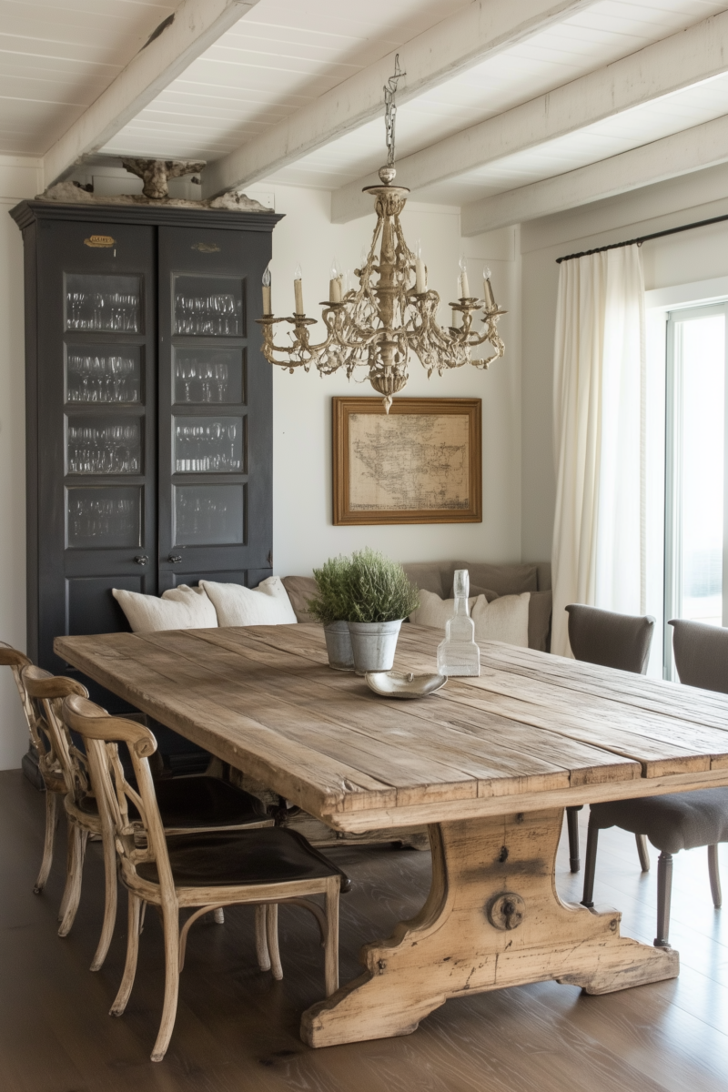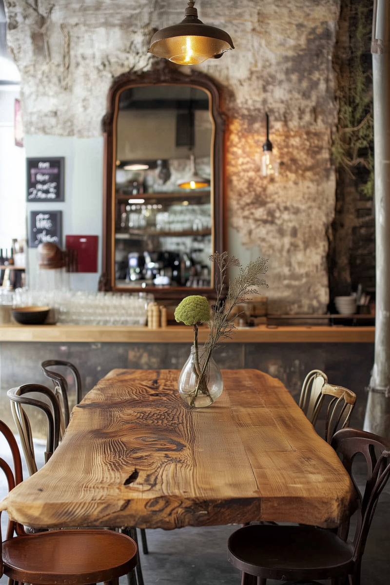 From weathered wood tables and mismatched chairs to antique lighting and nostalgic décor, these ideas will help you transform your dining space into a haven of warmth and history.