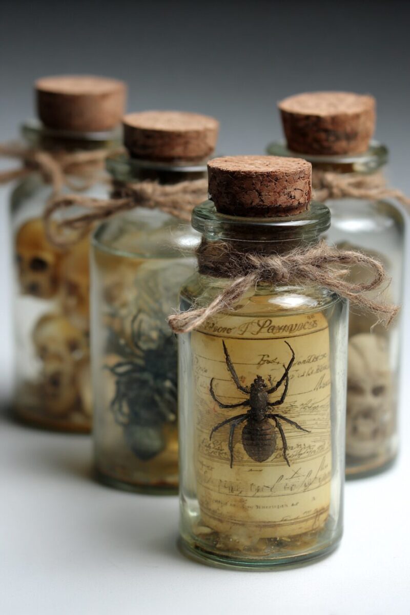Add dried herbs like sage or rosemary inside the jars for an authentic apothecary feel that’ll make guests wonder what potions might have been brewing.