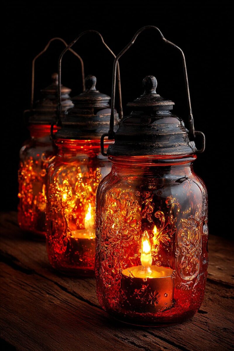 Antique Mason Jar Lanterns with Flickering Candles