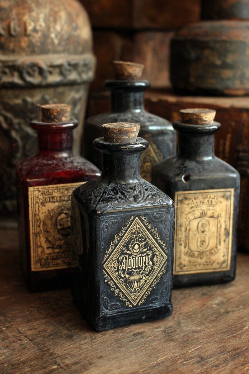 You can even create custom labels with vintage-style fonts, writing mysterious contents like “Witch’s Brew” or “Moonlight Essence” to enhance the mystique.