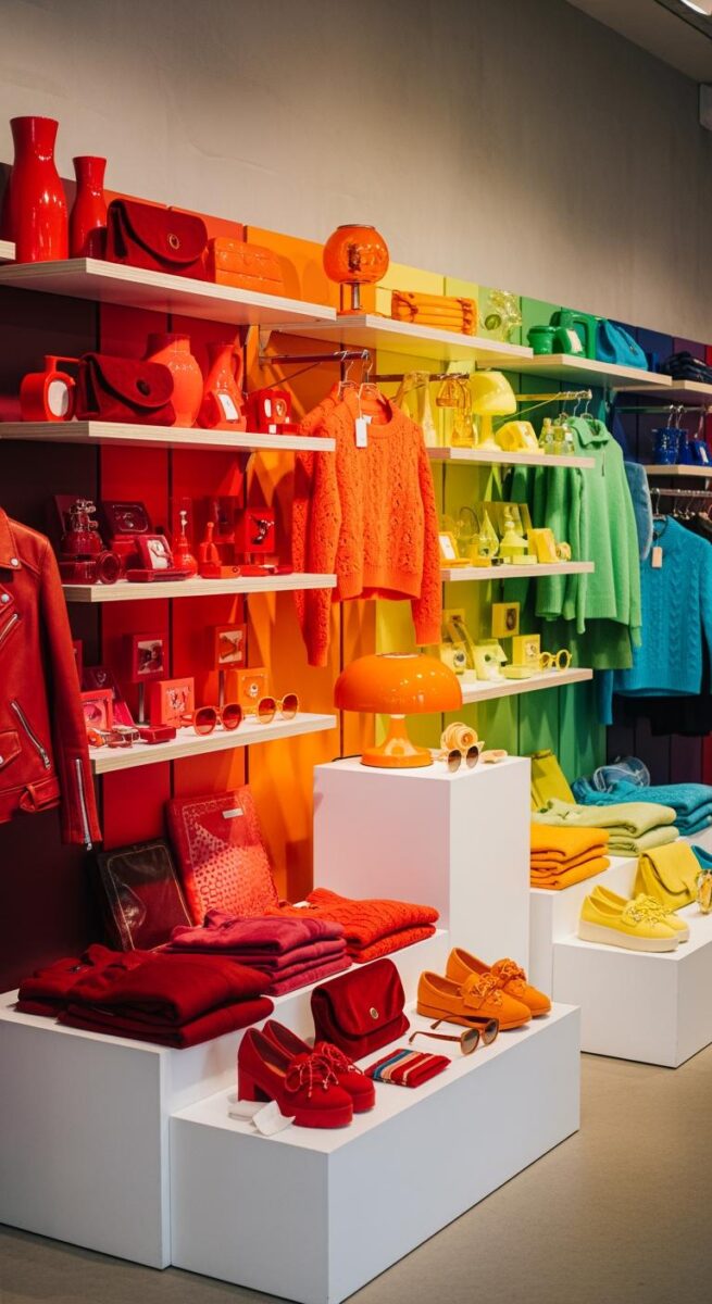 Grouping items by color simplifies the shopping experience and creates a cohesive and inviting atmosphere.