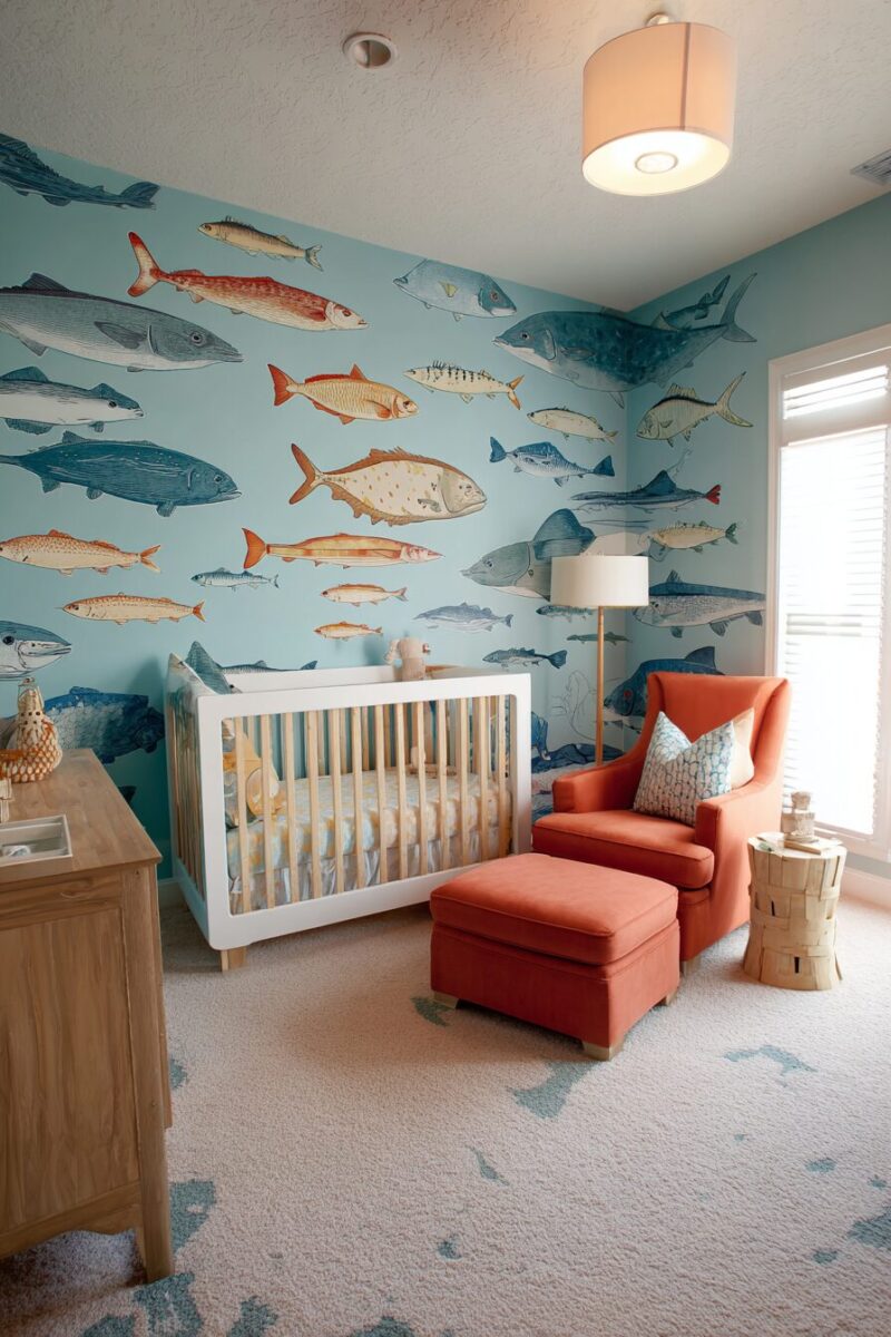 Transform your nursery into a tribute to aquatic sports’ golden age with vintage diving boards, swimming medals, and classic pool signage.