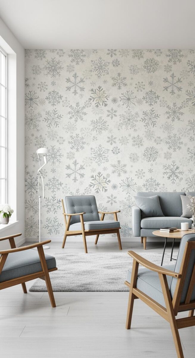 And when you choose it in winter-friendly shades—soft blue, charcoal gray, or even a pale mint—it becomes the perfect vintage winter wallpaper.