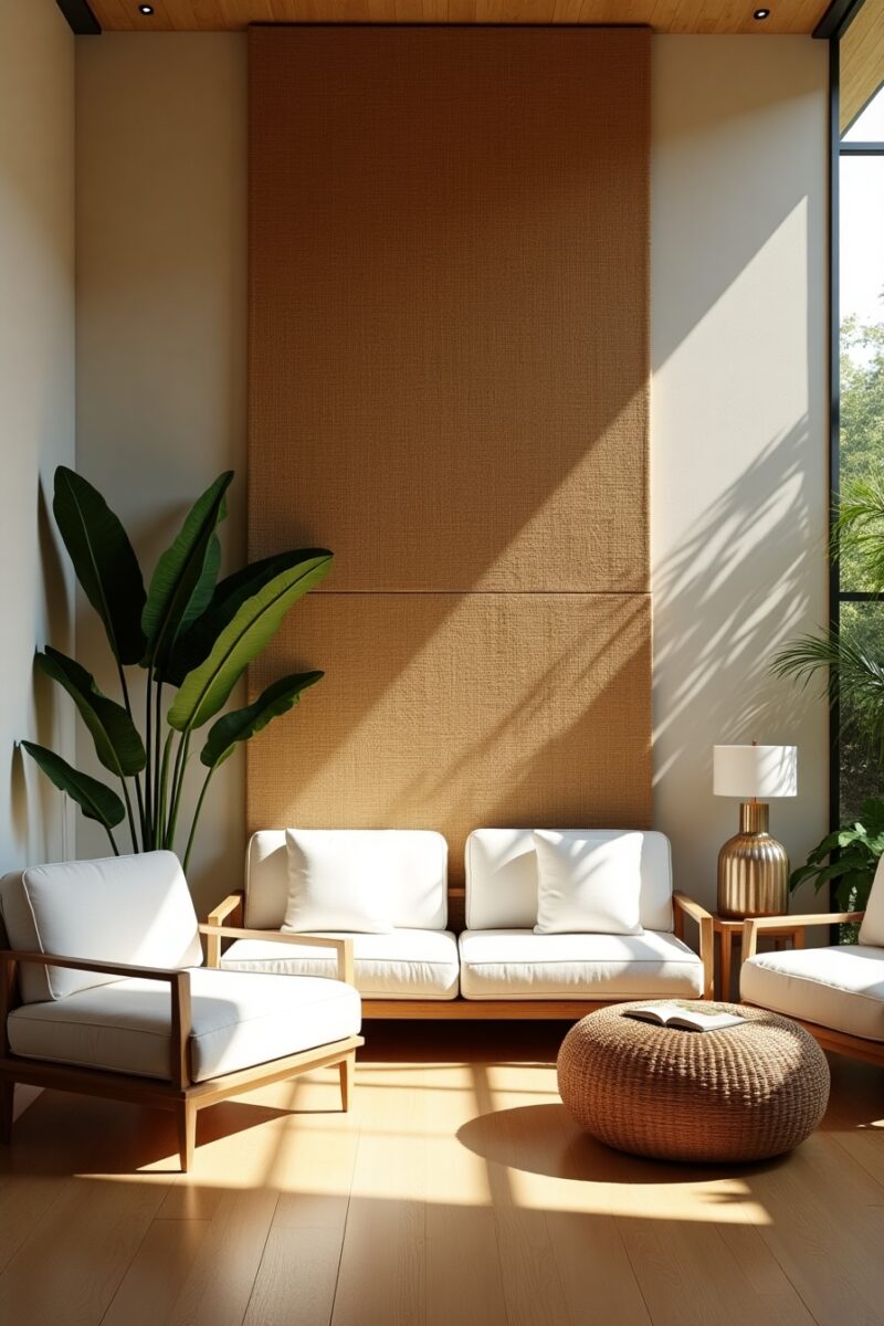 Consider creating picture-frame-like sections of rattan panels rather than covering entire walls—the material makes a stronger statement when used with intention.
